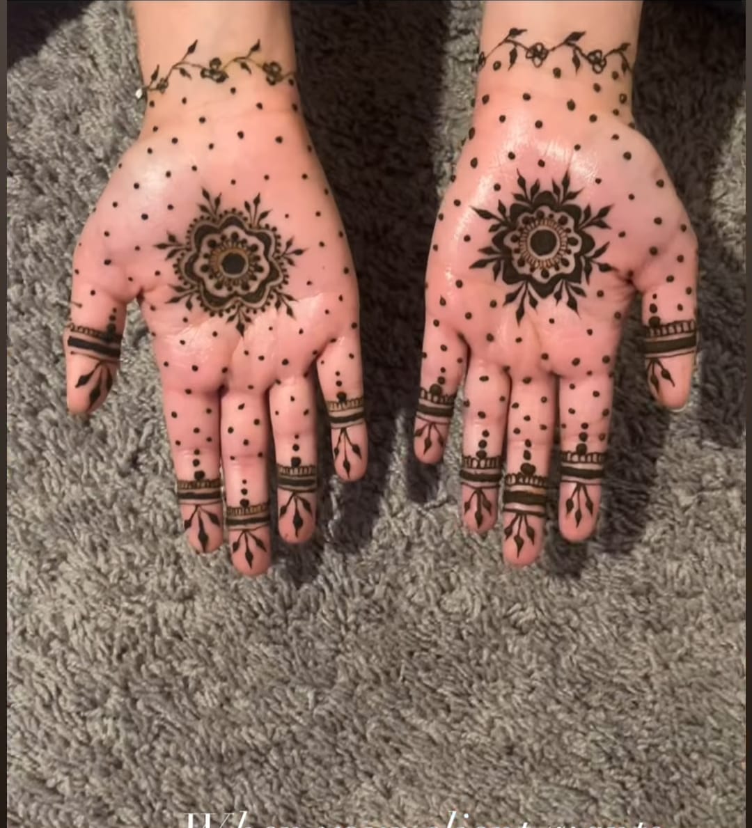 Ideal for casual occasions, modern brides, or anyone seeking a refined aesthetic, this design is applied with natural henna for a soft, earthy stain that complements every skin tone.